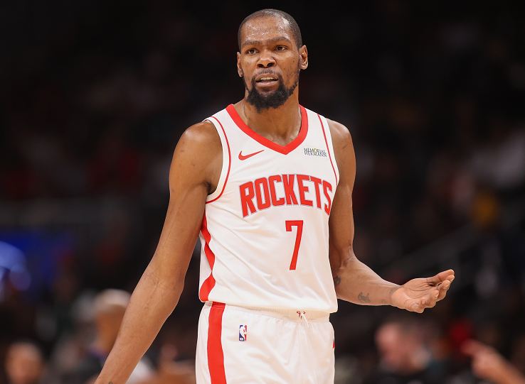 第二,火箭年轻人啃老,杜兰特累并挣扎着。火箭队年轻人攻防两端完全不在线,全靠杜兰特硬扛着,从首节11分,到第三节15分,杜兰特燃尽自己,有心杀敌无力回天!全场比赛下来,杜兰特出战31分钟,21投11中(三分球4中3),罚球8中6,空砍31分+3篮板+5抢断。据NBA官网数据统计,杜兰特以37岁130天的年龄成为火箭队史单场砍下至少30分5抢断年龄最老的球员。杜兰特攻防两端干了自己该干的事儿,也暴露了自身短板,仅1次助攻,失误却高达6次,实在是没有能力盘活队友。